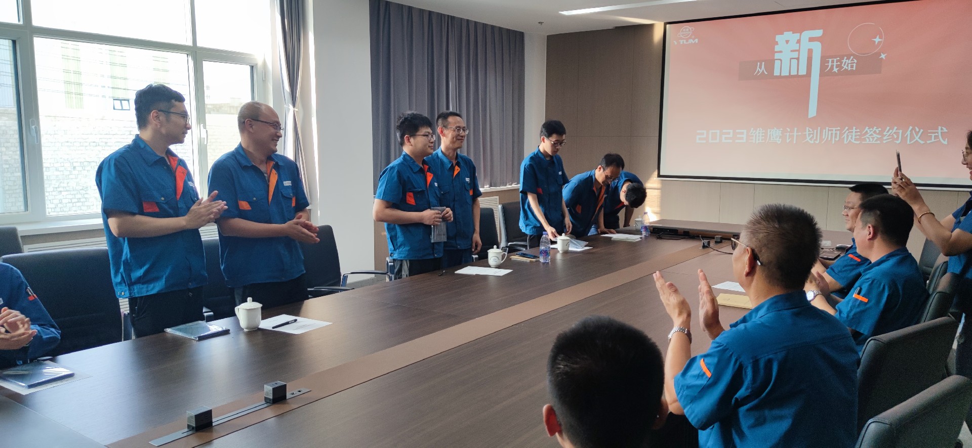 入職培訓(xùn)后,新入職員工和導(dǎo)師們在公司領(lǐng)導(dǎo)和各單位技術(shù)部門負責(zé)人的見證下舉行了隆重的師徒結(jié)對簽約儀式,師帶徒模式是我公司優(yōu)秀的傳統(tǒng),今年首次拓展到技術(shù)人才隊伍的培養(yǎng)。徒弟敬一杯師傅茶,象征著滿滿的尊重與濃濃的感情。師傅送徒弟一個本子,希望徒弟們能夠用心書寫自己職業(yè)生涯的第一篇文章。
