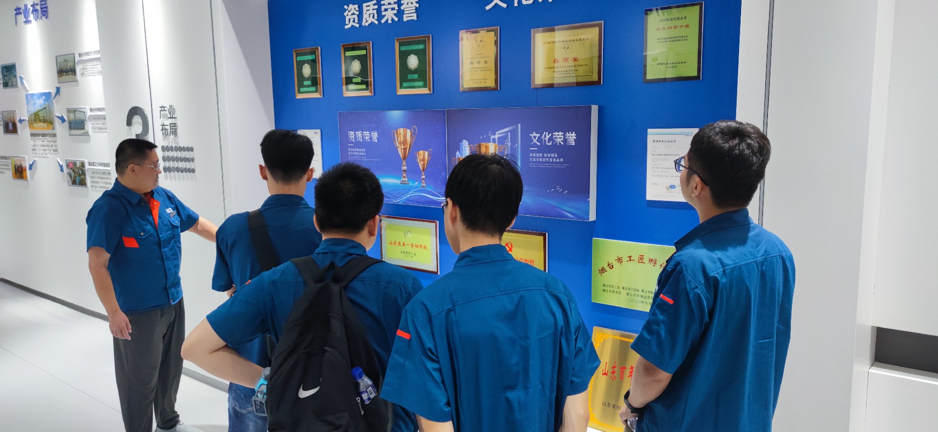 在入職培訓(xùn)中,公司副總經(jīng)理、總工程師景國豐向新入職技術(shù)員工詳細介紹了公司產(chǎn)品和技術(shù)發(fā)展情況,對技術(shù)崗位的職業(yè)發(fā)展前景進行了概括并對新員工提出了崗位要求與期待,勉勵大家能夠秉持“不登高山,不知天之高也;不臨深溪,不知地之厚也”的精神,成為一名深入一線,事必躬行的技術(shù)人才。企業(yè)管理中心副主任王德祥、人事專員崔巖輝分別為新員工們講解了公司的企業(yè)文化、人力資源制度及人才補貼政策,王主任帶領(lǐng)大家參觀了廠區(qū)及多媒體展廳,并向新員工詳細介紹了企業(yè)發(fā)展歷程及獲得的榮譽,大家對公司悠久的發(fā)展歷史感觸頗深,紛紛表示非常榮幸能剛畢業(yè)就應(yīng)聘進入這樣一家有底蘊的公司,希望未來的自己也能登上公司的榮譽榜,在企業(yè)的發(fā)展中留下自己的光輝痕跡。